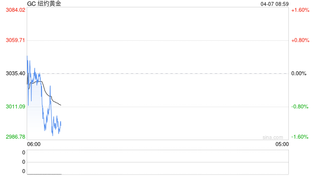 4月7日讯,现货黄金继续下跌,日内大跌2.00%,现报2977.76美元/盎司。纽约期金报2996美元/盎司。