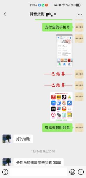 3.小额抖音月付(3000以内),类似美团的团购模式,在我们授权合作的商铺,让你测试下单,如果支持抖音月付,才能操作提现套出来,不支持的话后面基本都不用操作了,或者更换模式操作,或者只能过一段时间在来尝试了。如果你支持抖音月付套现的话,那么就可以按照要求去拍指定的商品,付完款之后把核销码截图发给商家,那边核销以后,还要需要登录的账号来核实真实情况,以上操作都完成的话,基本都能回款了,这种方法主要针对小额的客户,并且通过率还是可以的,一般也就是10~15分钟左右就能回款。